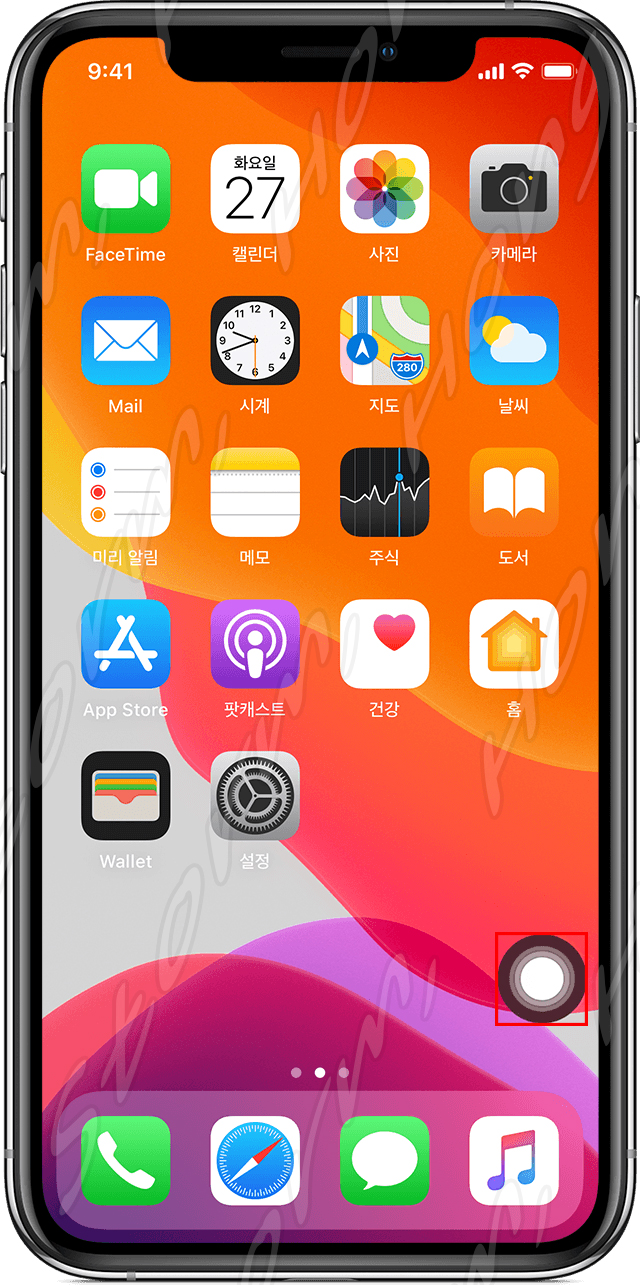 ( 설정 > 손쉬운 사용 > 터치로 이동한 다음 'AssistiveTouch'를 선택하여 켜고 끌 수 있습니다.)