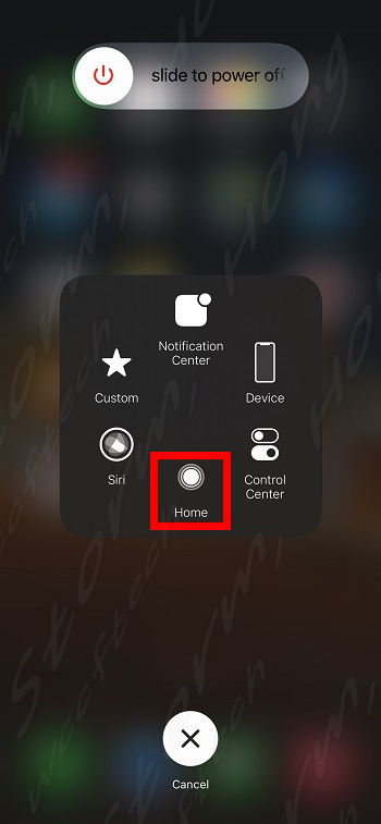 을 길게 누르면 메뉴를 호출 할 수 있습니다. (대부분 볼륨 작게 버튼과 전원 버튼을 길게 누르면 됩니다.)6. 전원 끄기 메뉴에서 호버링 된 AssistiveTouch 버튼을 탭(눌러) 합니다.7.
