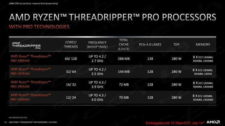 AMD Ryzen Threadripper 3955WX는 16 코어와 32 스레드를 특징으로 합니다. 총 72MB의 캐시, 128 개의 PCIe Gen 4.0 레인, 280W TDP가 함께 제공됩니다. AMD Ryzen Threadripper PRO 3955WX는 3.9GHz 기본 및 4.3GHz 부스트 클럭에서 작동합니다. AMD가 PRO 시리즈의 16 코어 및 12 코어 부품으로 내려 가고 AMD Ryzen Threadripper 제품군이 24코어로 내려가는 것은 흥미롭다고 합니다.