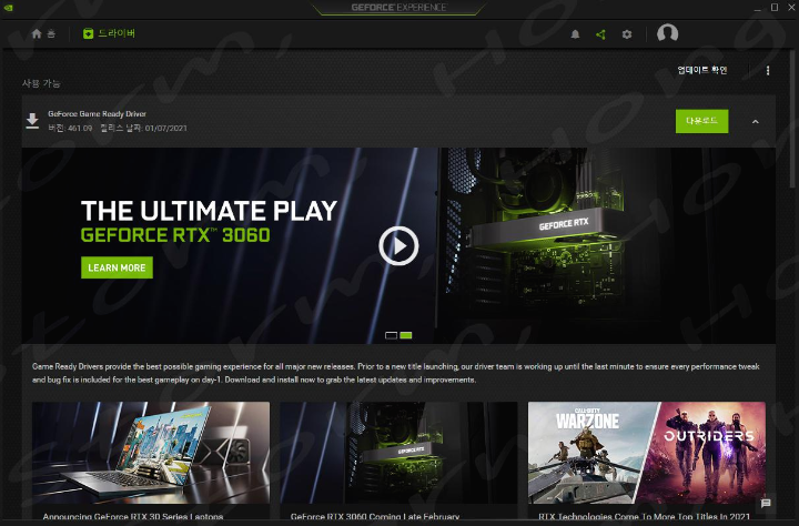 새로운 Geforce Game Ready Driver 버전 461.09가 PST 2021년 01월 06일 NVIDIA 공식 사이트와 GEFORCE EXPERIENCE에서 공개되었습니다. 이는 5일만에 업데이트입니다. 기존 460.89 버전이 후에 업데이트입니다.