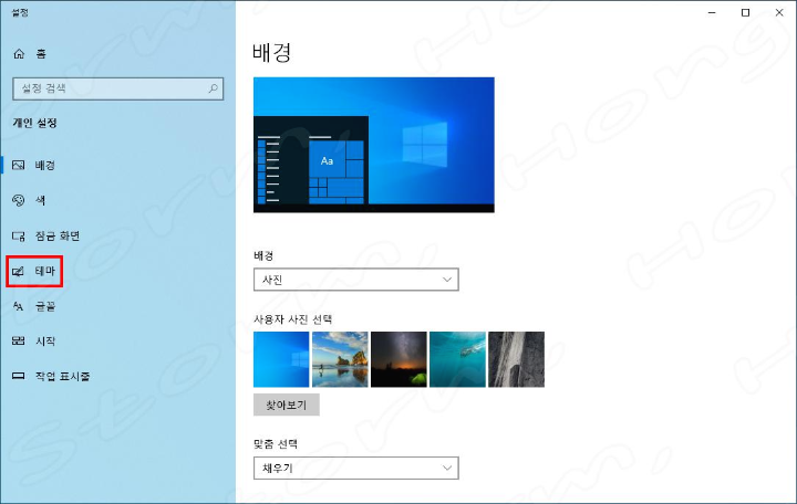 4) 테마 화면에서 스크롤을 내려 '바탕 화면 아이콘 설정' 을 눌러줍니다.