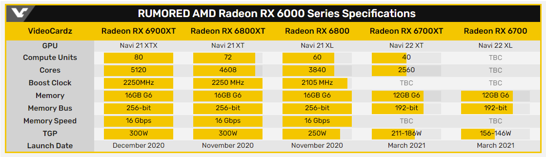 공식 프레젠테이션에서 AMD는 2021년 상반기에 출시될 RDNA 2 아키텍처를 기반으로 더 많은 데스크톱 및 이동성 GPU를 보유할 것으로 보인다는 이야기가 나왔습니다. AMD는 이러한 신제품의 이름을 구체적으로 밝히지는 않았지만, 과거 유출을 통해 알려졌습니다. AMD는 USD 500 ($) US 세그먼트에 더 많은 옵션이 도입될 계획이 있다는 이야기가 알려졌습니다.
