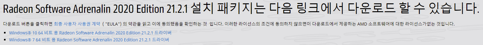 AMD Radeon Adrenalin 21.2.1 드라이버는 AMD 공식 웹 사이트를 통해 다운로드할 수 있습니다 .