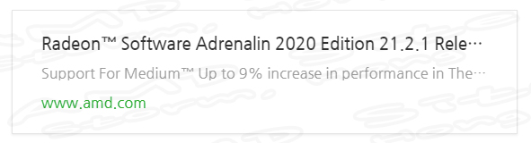 AMD Radeon Adrenalin 21.2.1 드라이버는 공식 홈페이지에서 출시되었습니다. 이는 2월 1일 업데이트가 진행되었습니다. AMD에서 이번에 The MEDIUM 게임 관련 업데이트 위주로 진행되었으며, AMD Radeon RX 6800 XT GPU에서 4K 의 성능을 향상 및 최대 9%가 향상되었다고 합니다.