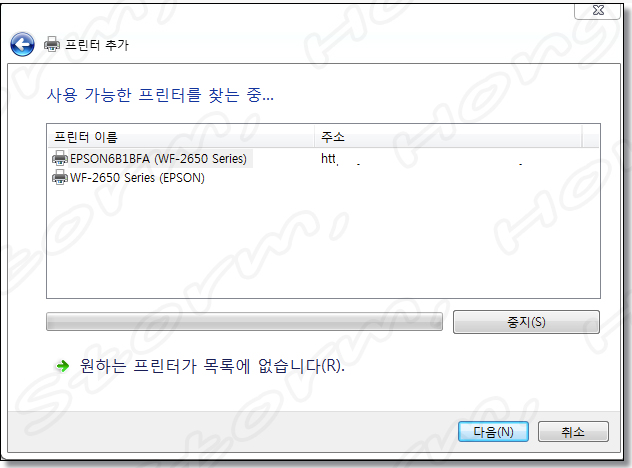 12. 프린터를 찾는 중이라는 메시지와 함께, 프린터를 찾으면 ↑위와 같은 화면이 나옵니다.