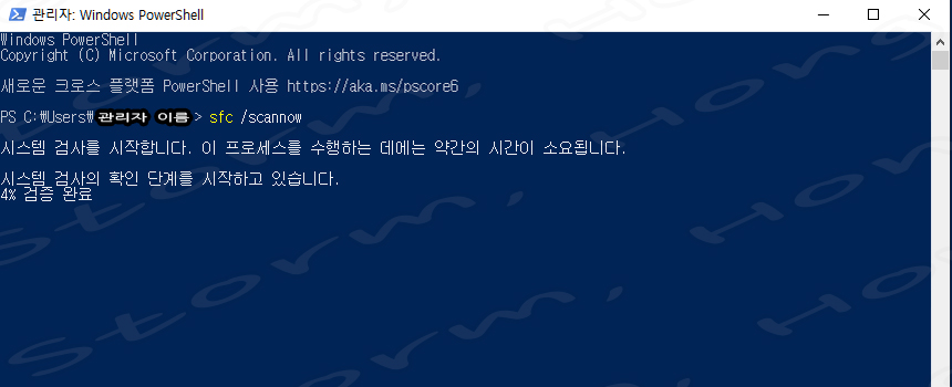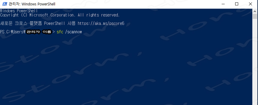 7) 파워셀 창이 뜨면 명령어를 sfc/scannow