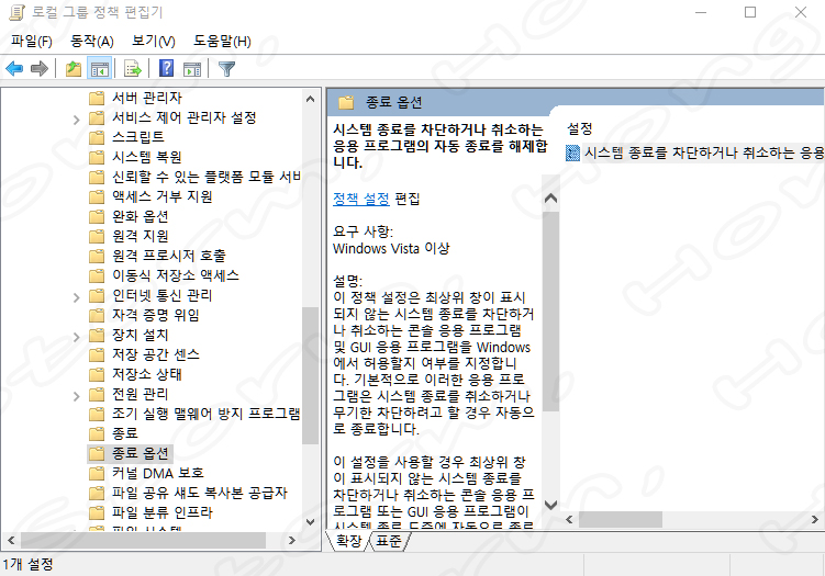 7) 이것을 적용 후 재부팅, 종료를 한번 해봅니다.