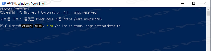 3) 이후 아래 그림과 같이 dism /online /cleanup-image /restorehealth를 입력