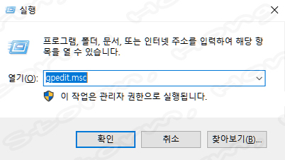 3) 명령어를 깜박이는 커서가 있는 공간에 gpedit.msc에 입력한 다음 확인 버튼을 눌러 줍니다.