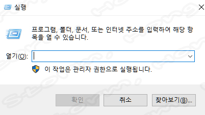 1) 윈도우키 + R 키를 눌러 줍니다. 2) 다음과 같은 화면이 나타납니다.