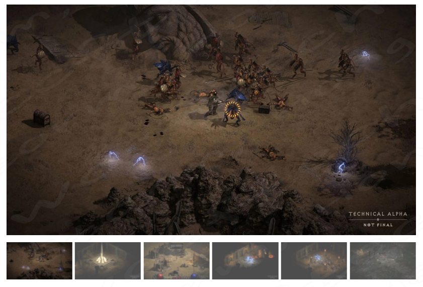* Diablo II : Resurrected는 처음부터 다시 제작된 27 분 분량의 시네마틱을 모두 선보입니다. 이들은 아직 작업 중이며 테크니컬 알파에는 오리지널 디아블로 II 시네마틱이 자리 표시 자로 포함됩니다.* 원본 2D 스프라이트 기반 모델은 완전한 3D 물리적 기반 렌더링으로 다시 태어납니다. 업그레이드된 비주얼에는 새로운 애니메이션, 동적 조명, 새로운 텍스처 및 업데이트된 시각 효과도 포함됩니다.