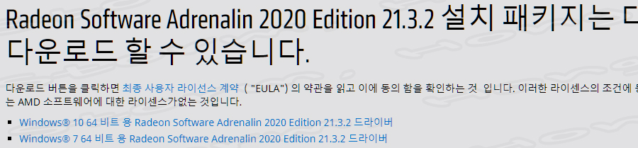 Window 10 64bit AMD 드라이버 다운로드 링크