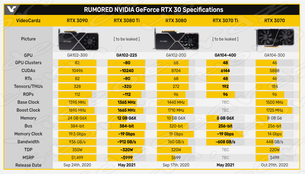 'NVIDIA GeForce RTX 3080 Ti 12GB' 에 대한 예측, 예상, 루머, 소문 의 그래픽 카드 사양