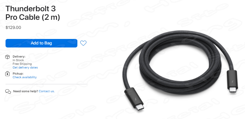 Apple 미국 공식 홈페이지에서 Thunderbolt 3 (썬더볼트 3) 2M 케이블을 USD 129 ($) , Apple 한국 공식 홈페이지에는 ₩ 165,000원에 판매를 하고 있습니다. 하지만 이를 사용하기 위해서는 USB-C 포트가 아닌 사용기기, M1 MacBook series, Mac mini , 2021 M1 iPad Pro의 Thunderbolt 3 (썬더볼트 3) 케이블을 구매한 후 사용 기기도 Thenderbolt 3 (썬더볼트 3) 전용 포트에 연결해야 재속도를 낼 수 있습니다. (다른 케이블 제조회사는 패시브 방식, 액티브 방식 길이 등 확인하고 구매하셔야 제대로 된 속도를 낼 수 있습니다. - 조건에 맞는 케이블을 구매하세요)