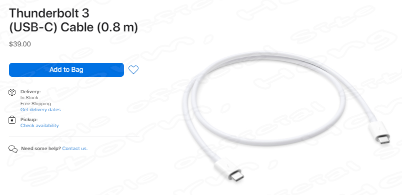 Apple 미국 공식 홈페이지에서 Thunderbolt 3 (썬더볼트 3) 0.8M 케이블을 USD 39 ($) , Apple 한국 공식 홈페이지에는 ₩ 49,000원에 판매를 하고 있습니다. 하지만 이를 사용하기 위해서는 USB-C 포트가 아닌 사용기기, M1 MacBook series, Mac mini , 2021 M1 iPad Pro의 Thunderbolt 3 (썬더볼트 3) 케이블을 구매한 후 사용 기기도 Thenderbolt 3 (썬더볼트 3) 전용 포트에 연결해야 재속도를 낼 수 있습니다. (다른 케이블 제조회사는 패시브 방식, 액티브 방식 길이 등 확인하고 구매하셔야 제대로 된 속도를 낼 수 있습니다. - 조건에 맞는 케이블을 구매하세요)