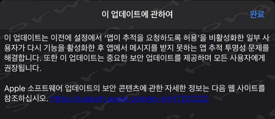 iOS 14.5.1은 업데이트는 긴급 업데이트인 만큼 iPhone (아이폰)의 메시지 알람 등의 수정이 이루어졌는지는 사용을 해봐야 정확하게 알 수 있을 것 같습니다.