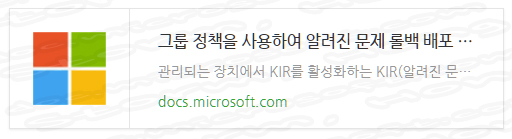 ↑KIR (Known issue Roolback) 자세한 내용을 원하신다면 이곳을 클릭해 주시기 바랍니다.