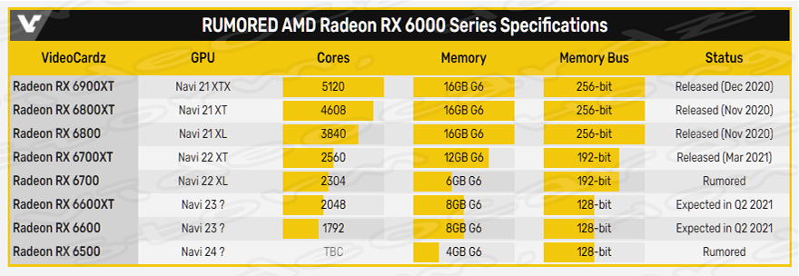 이 제품의St예상, 예측, 루머, 소문의 정보에 의하면 두 카드 모두 Navi 23 (RDNA 2) GPU로 구동될 것이라고 전해지고 있습니다. 이 모델의 최상위 제품에는 Navi 23 XT SKU를 특징으로 하며, 컷 다운 변형은 Navi 23 XL SKU를 기반으로 한다고 합니다. 이 두 그래픽카드 (GPU) 모두 RDNA 2 그래픽 IP에 포함된 모든 핵심 기술을 수용할 것으로 알려졌습니다.