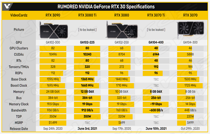 * 중요한 점은 NVIDIA GeForce RTX 3080 Ti (엔비디아 지포스 RTX 3080 Ti), NVIDIA GeForce RTX 3070 Ti (엔비디아 지포스 RTX 3070 Ti)에 대한 정보가 있었습니다. 그러나St이번에 알려진 정보들은 아직 확정 적인 내용들이 아니기 때문에 정확한 내용들이 나와야 제품에 대한 정보를 알 수 있을 것 같습니다.