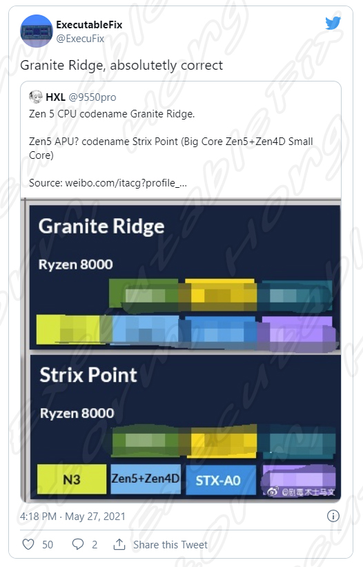 AMD Ryzen 8000 Granite Ridge CPU에 대한 특정 정보는 없었으며, AM5 LGA 1718 플랫폼과 호환되며 Raphael 제품과 비슷한 내장 RDNA 그래픽을 제공한다는St예상, 예측, 루머, 소문의 정보가 나왔습니다. 이에 Zen 5 데스크탑 CPU에서 보여줄 것으로St예상, 예측, 루머, 소문에 의하면 이는 2023년이라고 알려지고 있습니다.