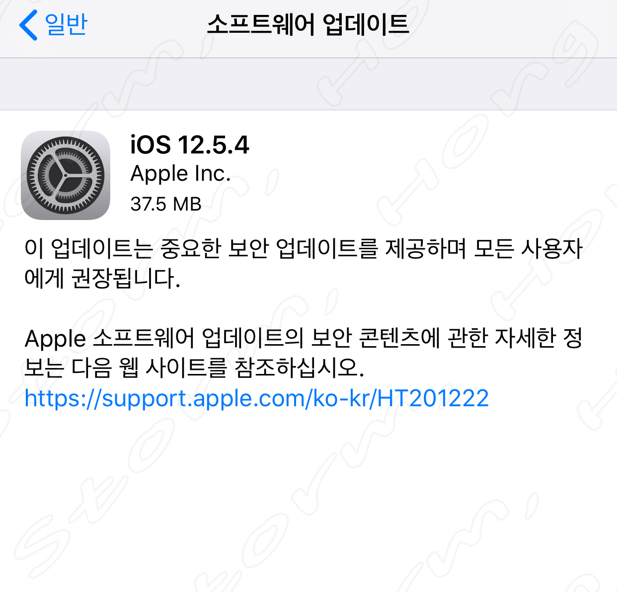 현재 iOS 12.5.3 이하의 버전인 경우 iOS 12에서 생기는St버그 또는 성능 문제가 발생할 수 있기 때문에 iOS 12.5.4 업데이트를 설치하는 것을 권장드립니다.