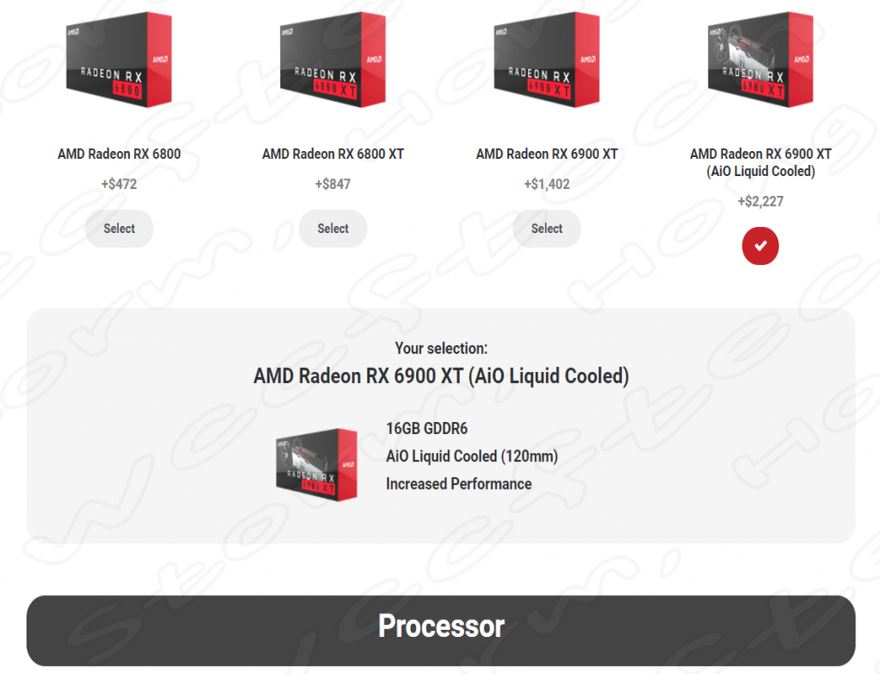 AMD Radeon RX 6900 XT의 가격은 USD 999 ($) 이며,St이번 AMD Radeon RX 6900 XT Liquid Cooled edition (AMD Radeon RX 6900 XTX) 는 프리미엄 디자인을 탑재하여 USD 1,500 ($) 이상에 팔매 될 것으로 예상, 예측, 루머 소문으로 알려졌습니다.St하지만 현재 AMD는 MainGear, PCSpecaialist, ibuyPower 및 APAC 지역에 기반을 둔 일부 시스템 통합 업체를 통해서 카드를 판매하고 있습니다. MainGear 사이트의 PC 구성은 공랭식과 수랭식 버전 사이에 USD 800 ($) 이상의 가격 차이를 보여주고 있습니다.