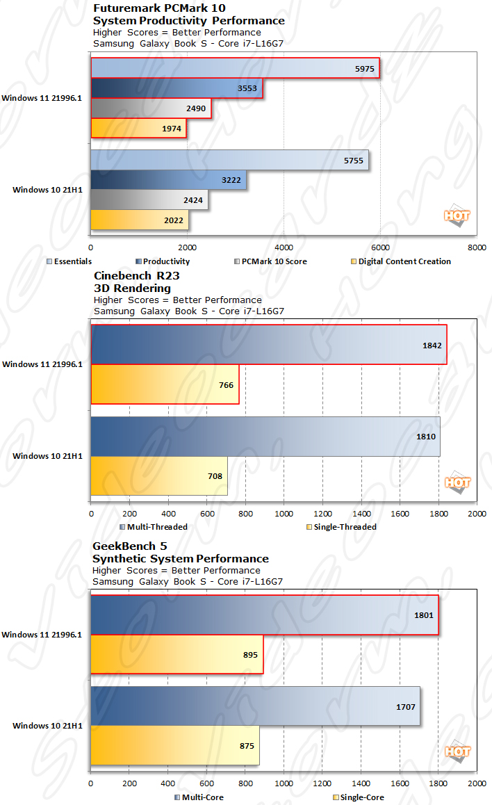 HotHardware는 상당한 특종을 발견했다는 이야기를 했습니다. 이에 알려진 내용에 의하면 Windows 11 iSO를 사용하여 Lakefield Core i7-L16G7 CPU를 테스트한 것으로 알려졌습니다. 이 새로운 정보는 크고 작은 코어 아키텍처가 있을 때, 성능을 향상하는 것으로 알려졌습니다.St이는 intel (인텔)이 곧 출시할 Alder Lake CPU가 windows 10과 유사한 성능 향상을 얻을 수 있음을 의미한다고 이야기가 전해지고 있습니다.StWindows 11은 Alder Lake를 지원하는 용도로 만들어졌을 가능성에 대해서 이야기를 덧붙였습니다. 이에 대해 몇 가지 밴치마크 내용이 전해졌습니다.