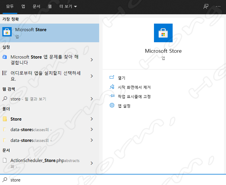 ↑ 작업 표시줄에 store를 입력한 화면입니다.