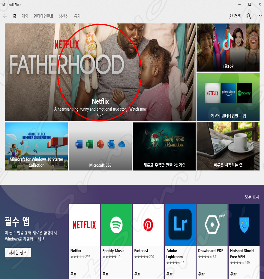 ↑ 'Microsoft Store'를 구동한 화면입니다.