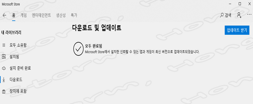 ↑ 'Microsoft Store'를 구동 후 다운로드 업그레이드 위치입니다.