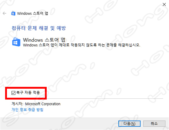 ↑ 'Microsoft Store 앱 문제를 찾아 해결합니다' 찾은 화면입니다.