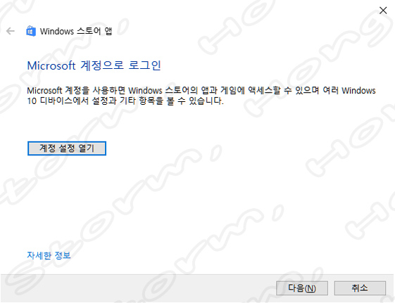 ↑ 'Microsoft Store 계정' 이 로그인되어 있다면 이와 같은 화면이 나옵니다.
