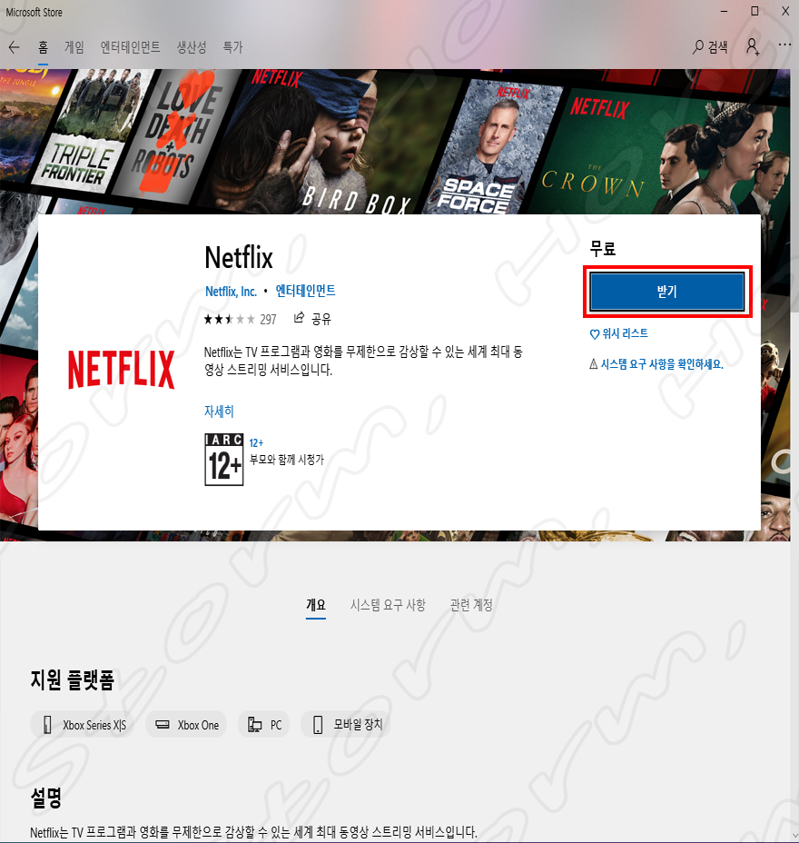 3. Netflix (넷플릭스) 받기 버튼을 눌러 줍니다.