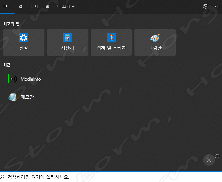 ↑ 작업 표시줄의 돋보기를 누른 화면입니다.
