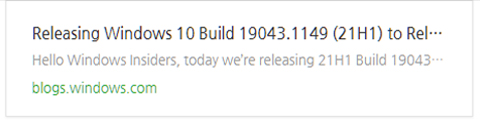 개발자 채널의 참가는 Windows 10 업데이트 19043.1149 (누적 업데이트 KB5004296)에 대한 업데이트 지원은 5월 업데이트로 종료되었다고 알려졌습니다.
