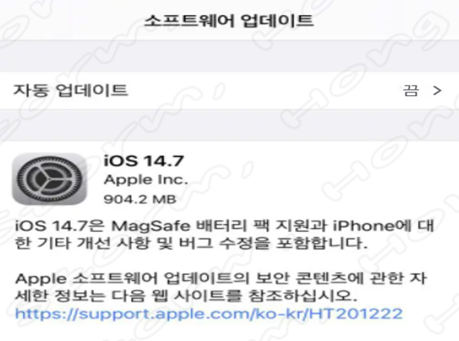 iOS 14.7의 설치 공간은 904.2MB 입니다. (설치용량은 각 이전에 업데이트하지 않으신 분들은 더 큰 용량일 수 있습니다.) iPhone에 대한 개선 사항 및 버그를 중점적으로 수정한 버전이며, 새로운 제품 지원의 안전성 업데이트라고 합니다.