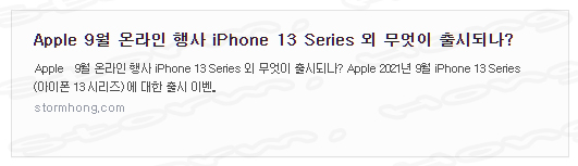| Apple 9월 온라인 행사 iPhone 13 Series 외 무엇이 출시되나? (2) | 2021.08.16 |