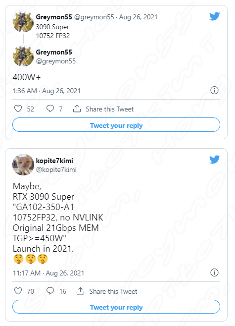 이번 예상, 예측, 루머, 소문으로 등장한 그래픽 카드 NVIDIA GeForce RTX 3090 SUPRER (엔비디아 지포스 RTX 3090 SUPER) 는 Greymon55에 의해 예상 예측 루머 소문의 정보가 알려졌습니다.