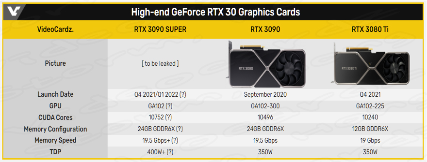 * NVIDIA GeForce RTX 3090 SUPER 그래픽 카드의 예상, 예측, 루머, 소문의 사양