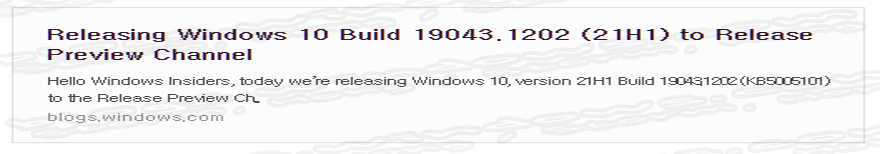 Microsoft (마이크로소프트)는 최신 윈도우 10 (Windows 10) 에 대한 윈도우 (Windows) 업데이트를 출시했습니다. 2021년 5월 업데이트 (버전 21H1)와 OS의 최종 버전, 버전 21H2를 Windows v21H1 빌드 19043.1202 및 v21H2 빌드 190044.1202 "preview"를 통해 릴리스 미리 보기 채널을 Insiders (내부사용자) 가 사용할 수 있다고 합니다
