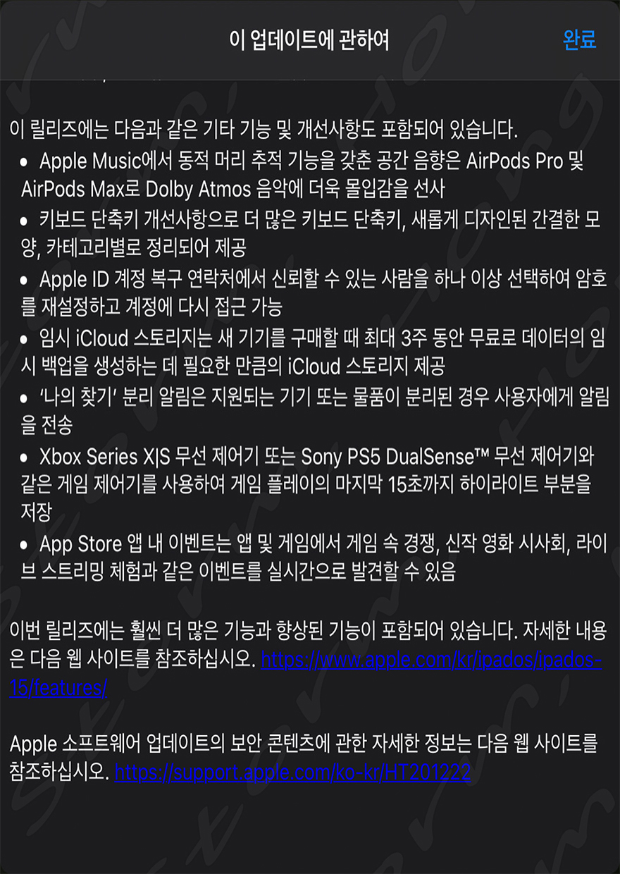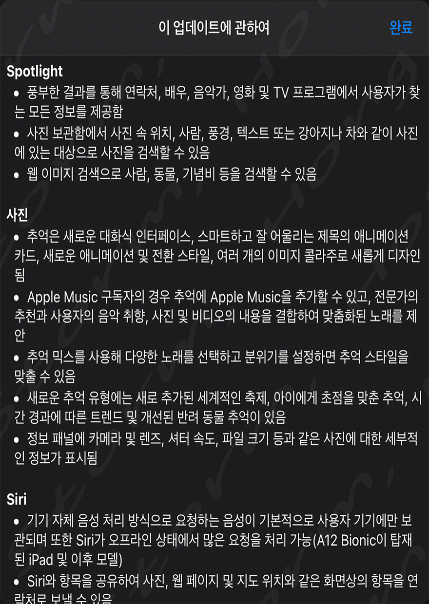 [ iOS 15 및 iPadOS 15 업데이트 내용 ]