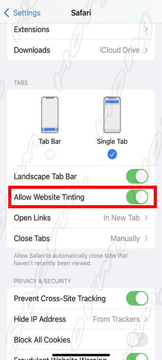 iOS 15, iPadOS 15 및 Mac에서 Safari 웹사이트를 열 때 변하는 컬러 탭을 비활성화 방법은?