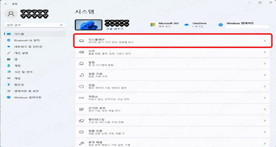 2. 오른쪽에 보이는 '디스플레이' 옵션을 클릭합니다.