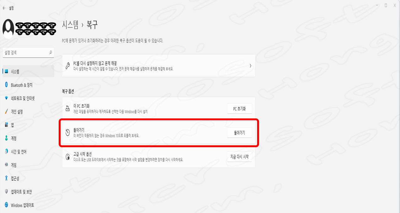 [Windows 11 (윈도우 11) 에서 Windows 10 (윈도우 10) 으로 롤백 하는 방법]