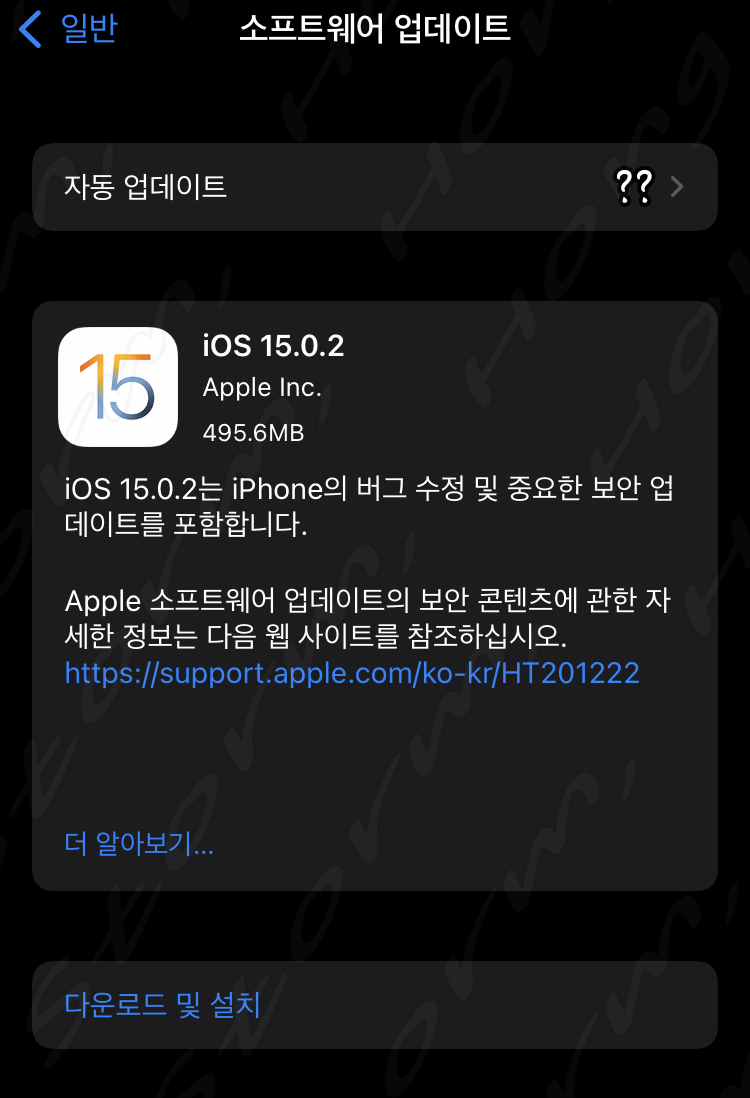 * iOS 15.0.2 업데이트 가능 모델 : iPhone 6s 및 이후 모델