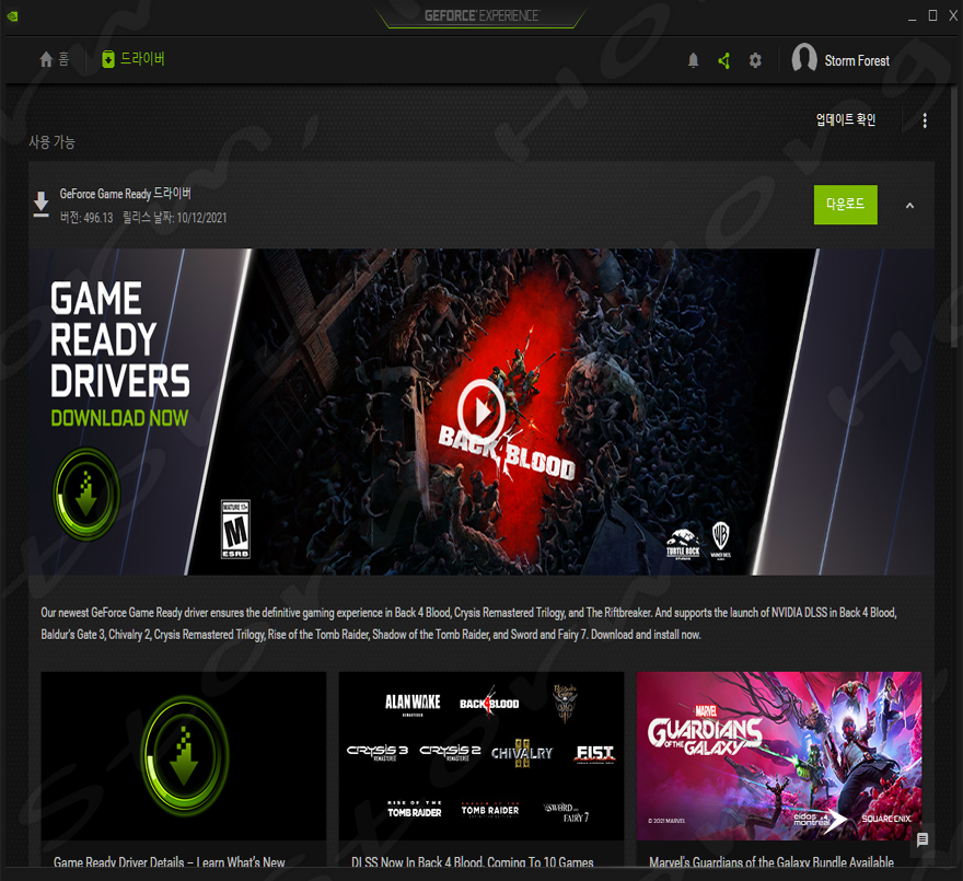 이처럼 Windows 11 (윈도우 11) 을 지원하며, Back 4 Blood 및 NVIIDIIA DLSS 지원을 받는 게임들에 대해서 최적화하여 좀 더 원활한 플레이가 가능하다고 합니다. NVIDIA GeForce Driver 496.13의 업데이트 내용은 다음과 같습니다.