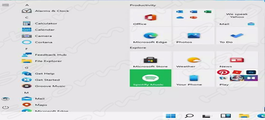 ↑ Windows 11을 설치 또는 업그레이드를 완료하였을 때, 나타나는 시작 메뉴의 모양입니다.