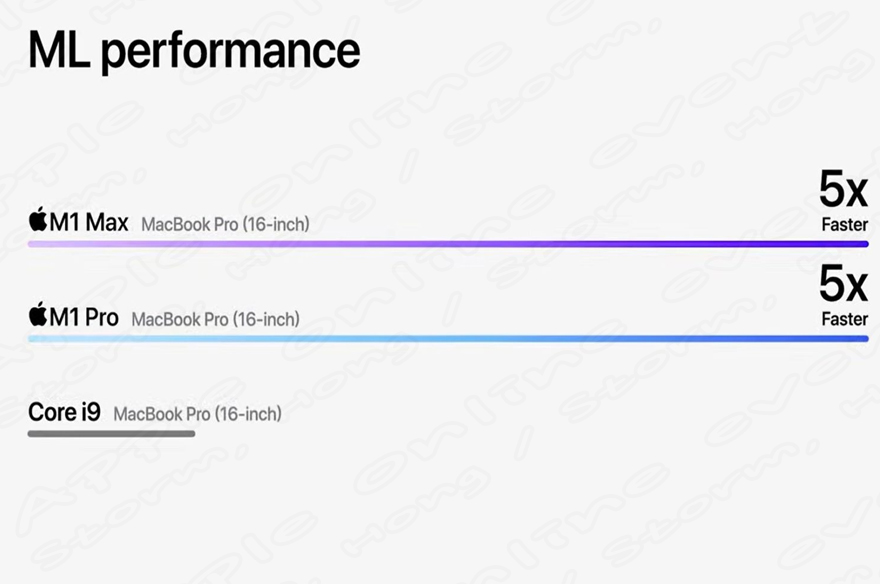 Apple Silicon M1 Pro 와 M1 Max는 모두 AI 및 DNN 애플리케이션 전용으로 초당 11조 작업 성능을 제공하는 16 코어의 뉴럴 엔진을 갖추고 있습니다. 이를 통해 메모리 측면에서 M1 Pro는 32GB의 통합 메모리 (4 채널 256 비트) 및 초당 최대 200GB 대역폭을 제공한다고 합니다.