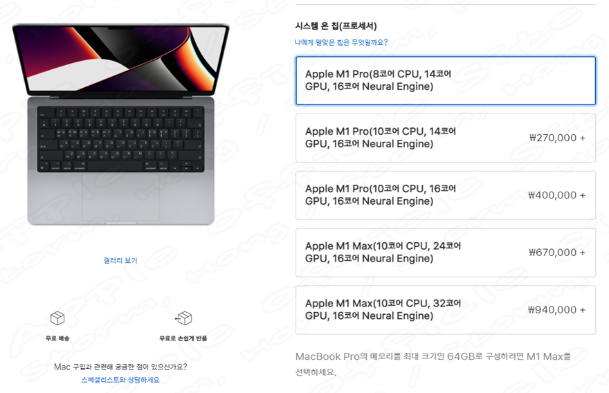 - 2021 MacBook Pro 모델 512GB 기본 모델로 시작하며 스토리지 추가 가격은?