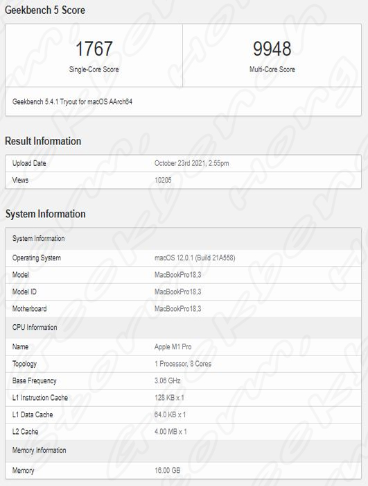 이는 Geekbench 벤치마크 성능 점수이며, 단일 코어 성능 측면에서 8 코어 M1 Pro M1 제품 및 M1 Max 칩의 점수는 거의 동일한 점수를 기록한 것으로 알려졌습니다. 결과에 따르면 성능 향상은 새로운 MacBook Pro 모델의 멀티 코어 성능일 것으로 알려졌습니다. 이에 M1 칩과 비교하면 8 코어 M1 Pro 칩은 약 30% 더 빠름며, M1도 8 코어를 가지고 있으나 고성능 코어 효율 성은 동등하게 나타난다고 알려졌습니다.
